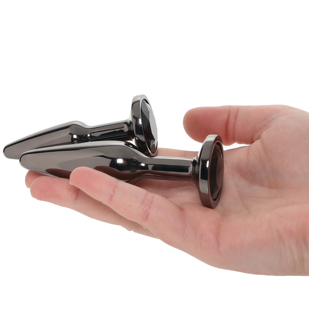The Rear Assets Metal Plug Kit from ns novelties gives a duo of sparkly, gem-studded plugs—Small and Medium. So, ready to explore?