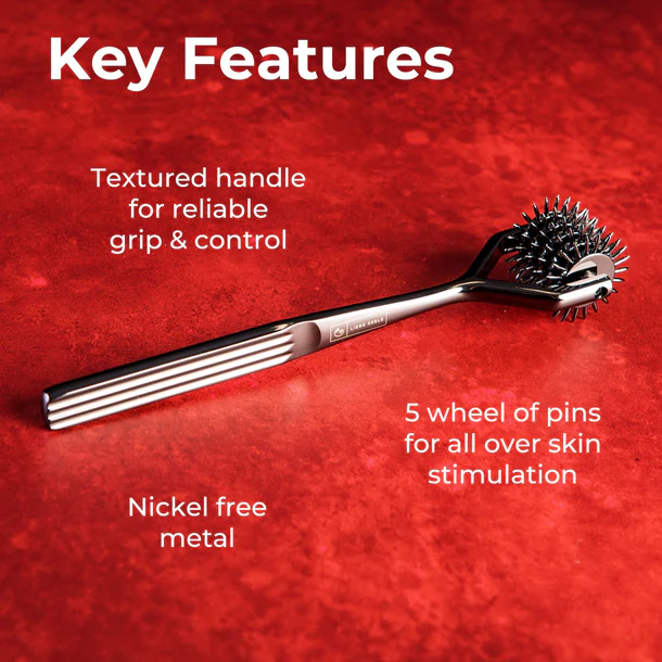 Unleash electrifying new sensations with the Sei Mio Wonder Wheel, a 5-row sensory pinwheel that brings a thrilling edge to every touch. Designed to heighten sensitivity, this elegant yet daring tool features five rows of precisely placed spikes that glide smoothly along the skin, awakening nerve endings and igniting tingling pleasure. Whether exploring light strokes or adventurous pressure, the Wonder Wheel intensifies every caress, nibble, and pinch, making each touch unforgettable. With its ergonomic handle, this seductive sensory toy is as easy to control as exciting to wield, letting you explore a full spectrum of sensation play with comfort and confidence.
