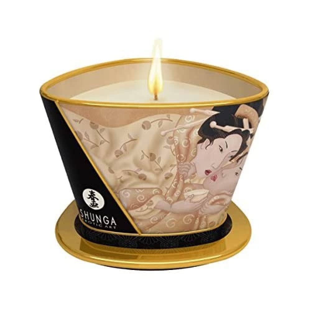 This soy based candle can be used both as an ambiance candle and intimate massage oil. Infusing surroundings almost immediately with a signature scent, Shunga’s predominately natural blend of coconut, sweet almond, safflower and soy oils melts quickly to liquid form once lit. Pouring smoothly, the oil can be drizzled sexily over the lucky massage recipient, eliminating unwanted friction, softening and moisturizing body surfaces and entrancing mates with its intoxicating fragrance.