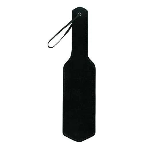 The Square Paddle features one side in black suede and the other in black leather. A leather thong loop is at the top for better control and hanging up after use.