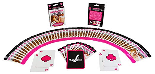 Strip Bedroom Blackjack! Contents: 1 instruction card, 8 wild cards, and 52 cards that included 104 strip and foreplay activities. 100 plus game possibilities! The initial object of Strip Bedroom Blackjack is to get you and your lover stripped naked while trying to get 21, For example Ace and a King or two 10s and an Ace. Once in the buff, you can then take part in the many sex and foreplay activities. Although this game is called Bedroom Blackjack, you can also turn any of your favorite card games into wildly sexy fun. Play Blackjack, Poker, Rummy, War, Fish, Crazy 8 or even Concentration-the possibilities are endless. Anticipation increases with each new hand and pleasure is not just awarded to the winner.