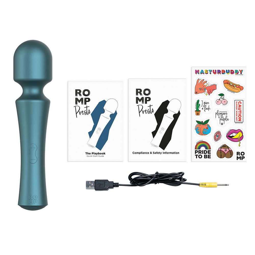 ROMP Presto is a compact wand vibrator designed for solo masturbation or partner play. Take orgasmic magic into your hands and play with the 6 vibration intensities and 4 pattern modes. With the wave of the wand, experience the sensational, unique squishy silicone head on your skin. Versatile, rechargeable and waterproof, Presto offers pure pleasure magic. ”