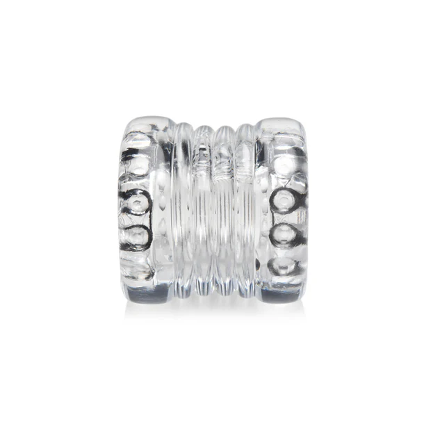 With a good amount of stretch, the Ball Stack remains comfortable while being worn for a long duration and moving around from position to position. At both ends of the tunnel are rows of textured nubs that add extra stimulation and grip.