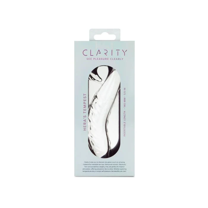 Handblown from premium borosilicate glass, Hera’s Tempest offers a compact yet striking silhouette crafted for refined stimulation. Heras Tempest is a 5.5-inch glass dildo with a sculptural circular handle, blending graceful design with precise, controlled pleasure. Its softly curved 5.5-inch shaft is perfectly shaped to reach the g-spot or prostate, while the ergonomic circular handle provides effortless grip and precise control. Smooth, seamless, and body-safe, it glides beautifully with any lubricant and is simple to clean.